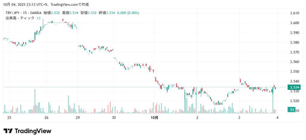 トルコリラの取引については、MT4に切り替えたせいでウォッチする必要がなくなってしまった。まぁ機会を伺っていただけで取引は1度もしていないけど。今後どうするかは少し検討が必要。