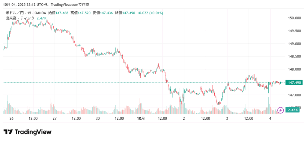 米政府閉鎖により、米雇用統計の発表が延期に。ドル円は前半下落も後半はレンジ相場。